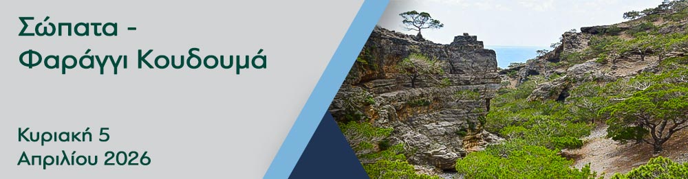Κυριακή 5 Απριλίου 2026 Το φαράγγι του Κουδουμά είναι ένα από τα ομορφότερα φαράγγια του νησιού μας. Κατάφυτο, με θέα που κόβει …