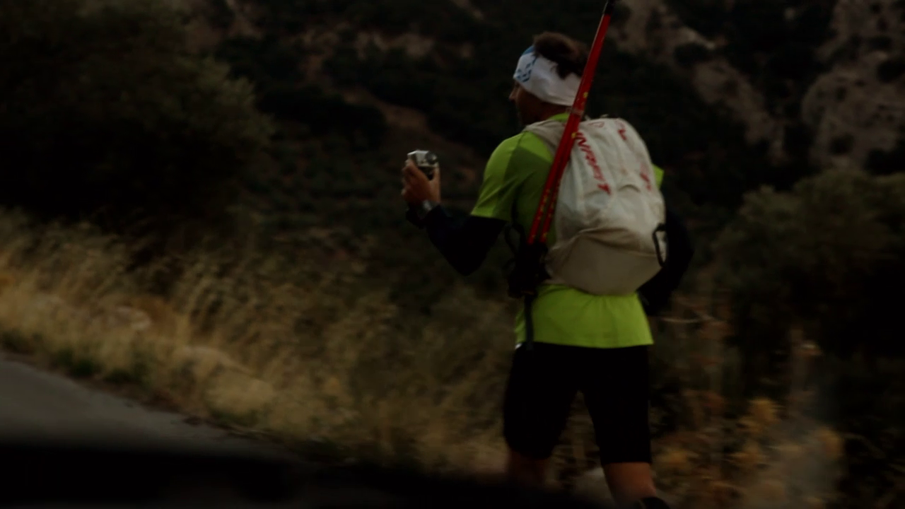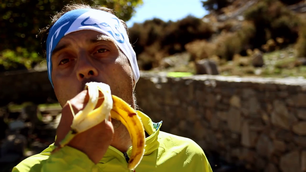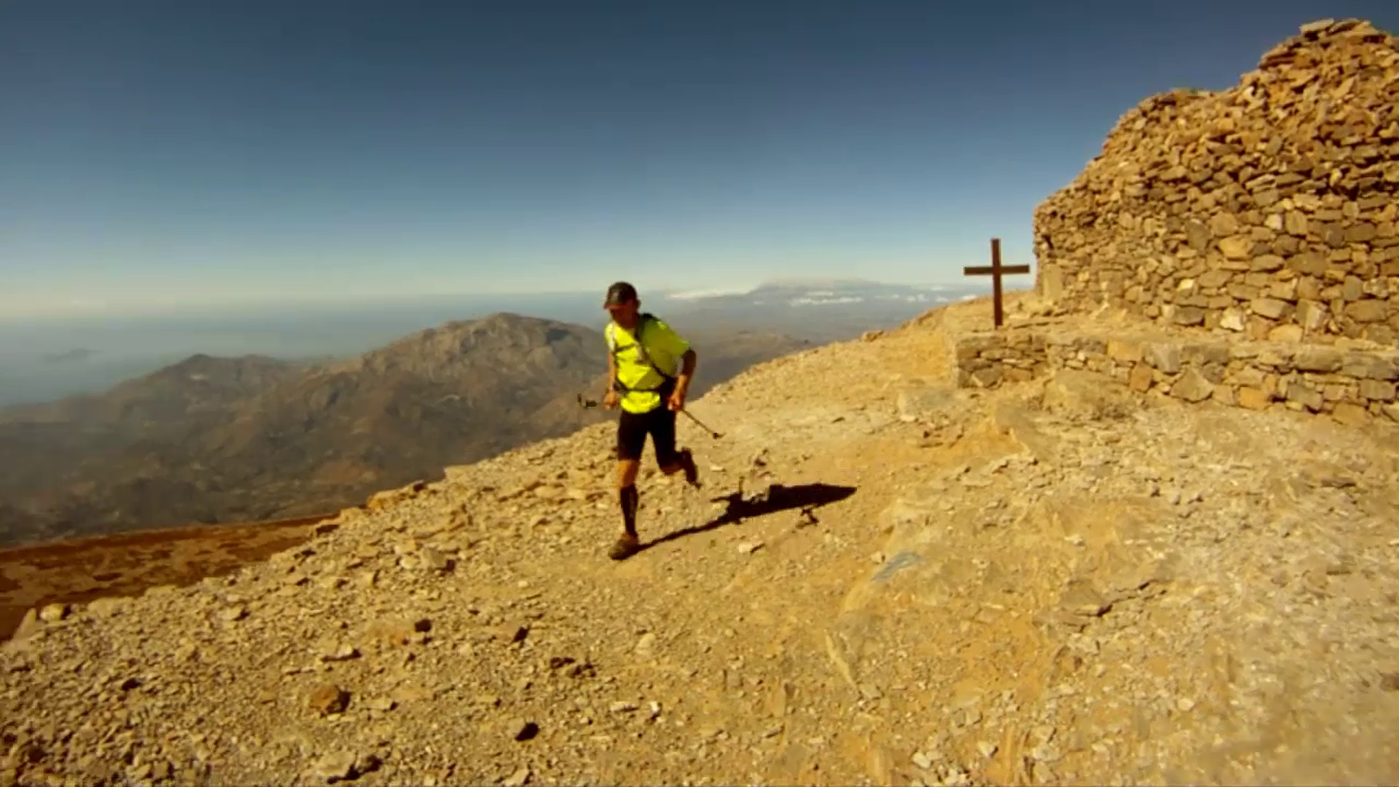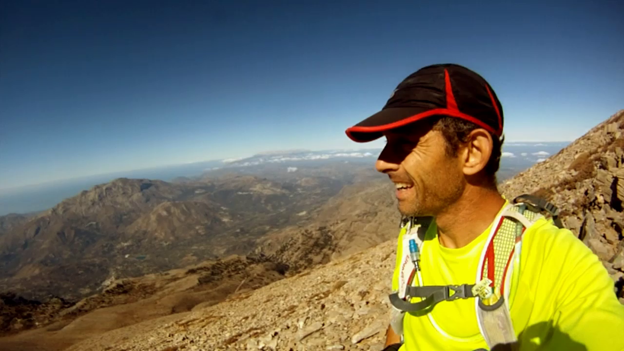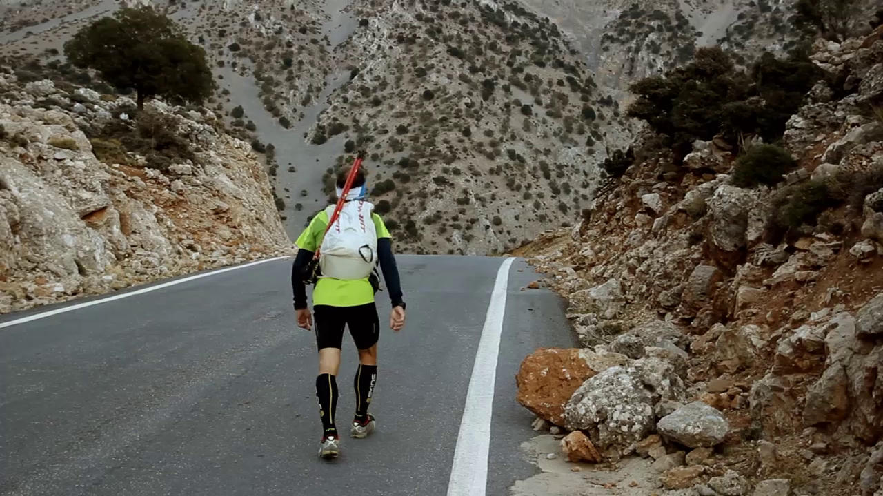 Επιστρέφοντας στην Κρήτη και αφού είχε πάρει φόρα, δοκίμασε και εδώ, μόνος αυτή τη φορά, ένα παρόμοιο εγχείρημα ορεινού τρεξίματος: τη διάσχιση των τριών βασικών ορεινών όγκων της Κρήτης σε τρεις μέρες, από δυτικά προς ανατολικά. Συμπαραστάτη του σε αυτή την προσπάθεια είχε το Μανούσο Πουλινάκη, ο οποίος συγκέντρωσε όλο το υλικό που και οι δυο τους κατέγραφαν τις τρεις αυτές ημέρες και έφτιαξε μια ταινία μικρού μήκους την οποία θα παρακολουθήσουμε αμέσως μετά την παρουσίαση των Άλπεων.