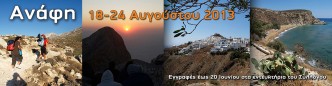18-24 Αυγούστου 2013 Αρχηγός: Ζουμπουλιά Βολωνάκη Πρόγραμμα Κυριακή 18-8-13 Aναχώρηση το απόγευμα από Ηράκλειο για Ανάφη. Άφιξη μετά από 3 ώρες, τακτοποίηση …