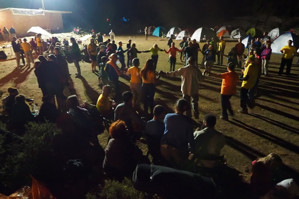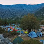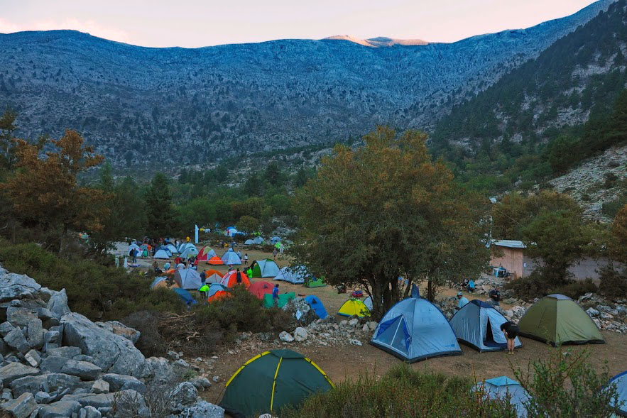 On Saturday we reach the camping site after a two-hour-hike. Our baggage is transferred in trucks. Later there are gretings and gift exchange between the Clubs. Then dinner and a fest follow. We spend the night in tents in Agios Konstantinos, at 1360m a.s.l.