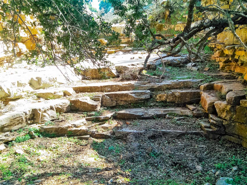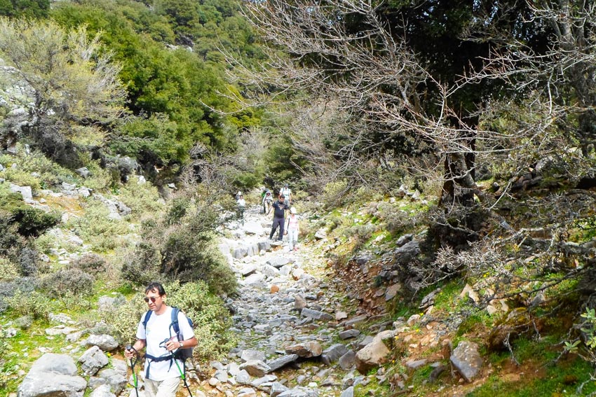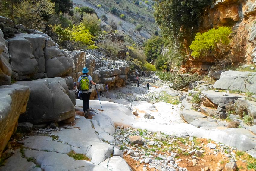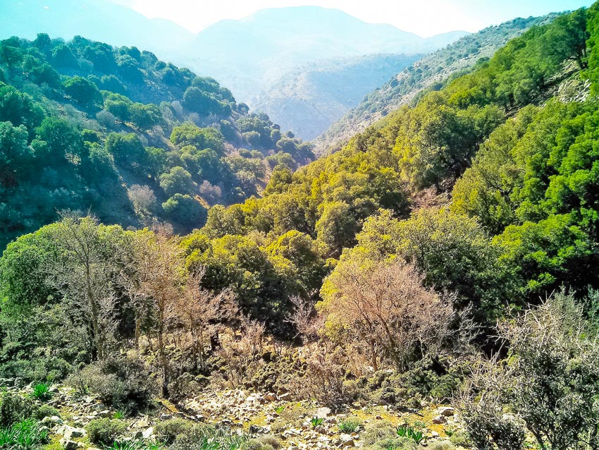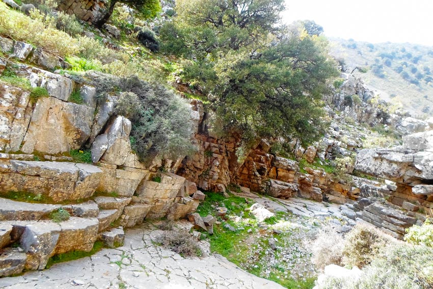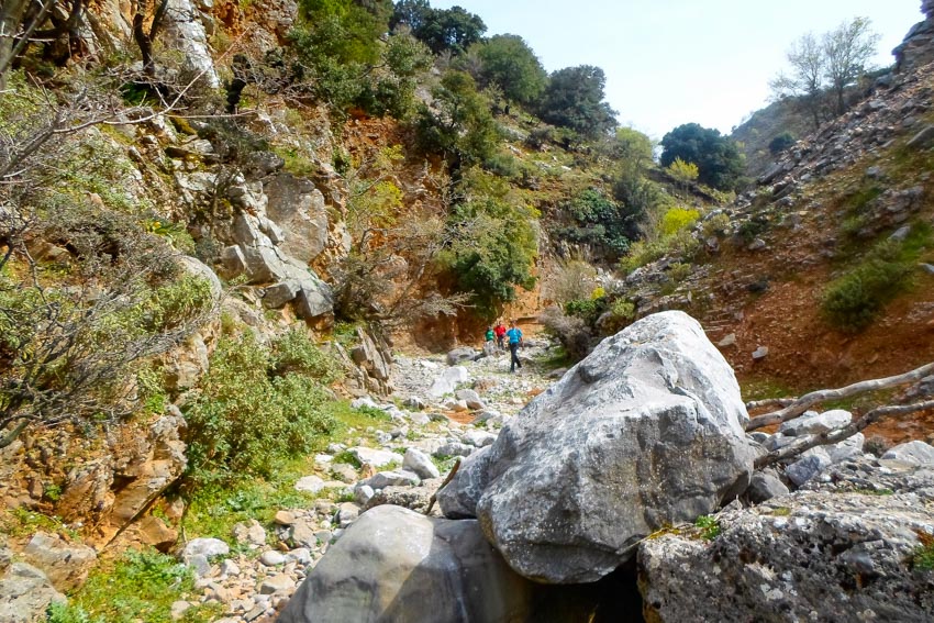 Our hike starts from the asphalt road towards Nida plateau, at 1190m a.s.l. and follows the dirt road to Agios Yakinthos for 3 km. Then we take a path through a forest to a small church called Roussa Limni, meaning Red lake, named after the reddish ground. We continue hiking down until we enter the Zoniana gorge. The gorge is not difficult, the surroundings are beautiful and the rock formations are impressive. Our hike ends in the village of Zoniana, at 630m.