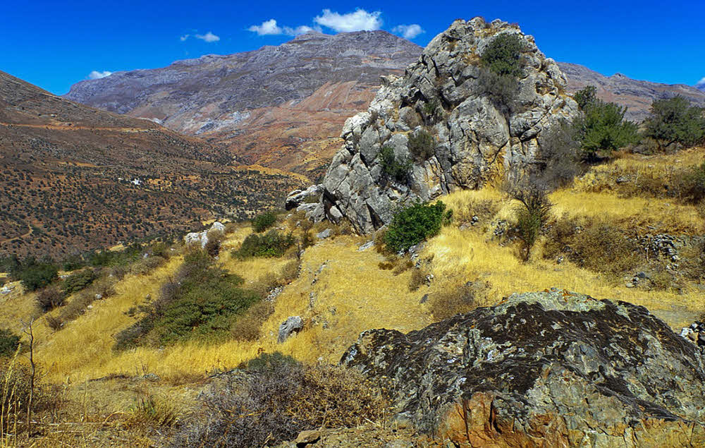A circular hike in the southern Rethymnon. From the village of Melambes, at 550m a.s.l., we hike along a trail and a dirt road up to the peak of Vouvala, at 946m. From the top, the view of the mountains around and the southern coast is magnificent.