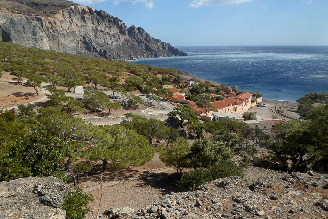 Πρώτη στάση στο εκκλησάκι του Αγίου Παύλου, μετά από τέσσερα περίπου χιλιόμετρα χωματόδρομο.  Χρονολογείται από το 14ο αιώνα, την εποχή της Ενετόκρατίας που ήταν Μονή και γνώρισε  μεγάλη ακμή. Είναι κτισμένο στην ανατολική πλευρά του Κόφινα σε μικρό οροπέδιο με πηγή και τρεχούμενο νερό. Ακολουθώντας το μονοπάτι που κατεβαίνει το φαράγγι κάτω από τον Άγιο Παύλο  θα βρεθούμε να περπατάμε σε ένα από τα πιο επιβλητικά τοπία της Κρήτης. Η άγρια και τραχιά  ομορφιά των Αστερουσίων σε όλο της το μεγαλείο να καταλήγει και να ηρεμεί στην αγκαλιά του Λιβυκού πελάγους, στο γαλάζιο που χάνεται στον ορίζοντα και αφήνει το βλέμμα και τη σκέψη να ταξιδέψει χωρίς όρια.