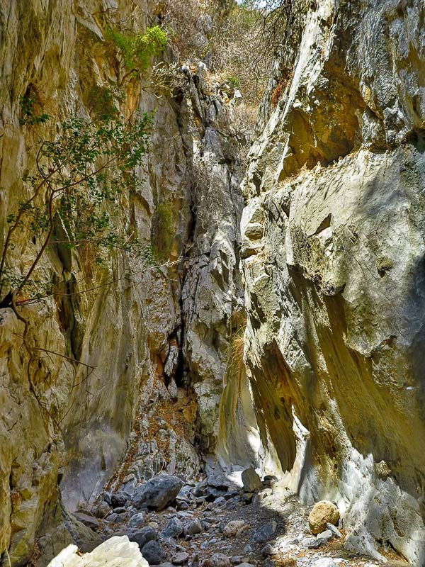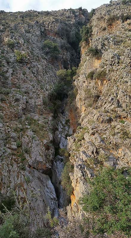 Όμορφο και στενό φαράγγι, στα νότια του νομού Ρεθύμνου στο χωριό Ροδάκινο, που το πλάτος του σε ορισμένα σημεία είναι μόνο 1,5μ. Σχετικά εύκολο, με 23 τεχνικές καταβάσεις με σχοινιά (ραπέλ), η μεγαλύτερη των οποίων είναι 16 μέτρα.