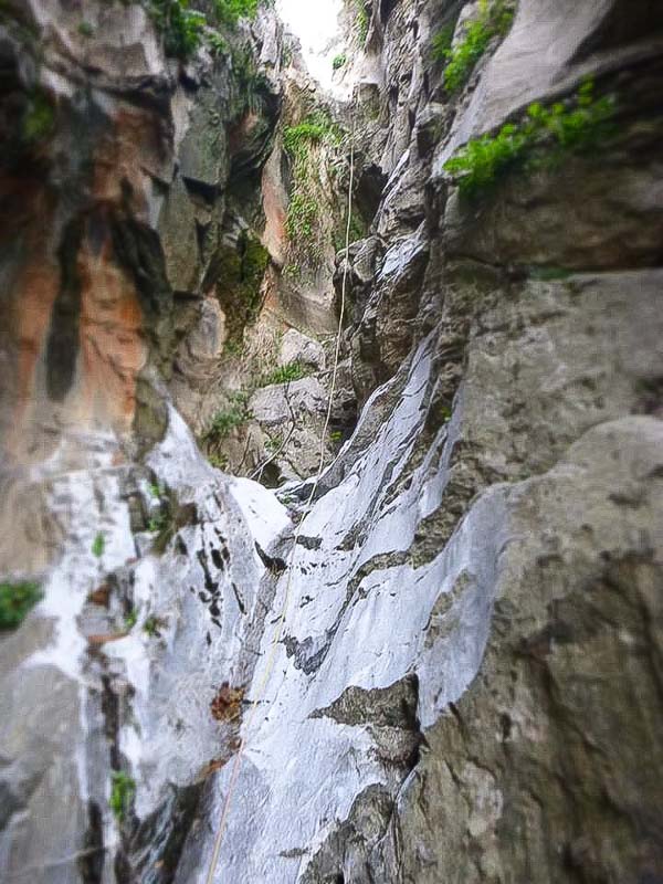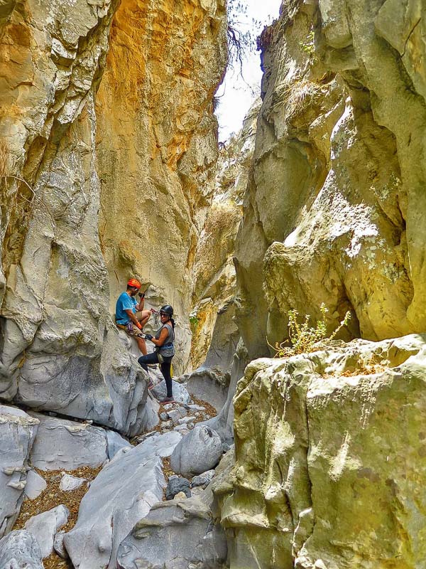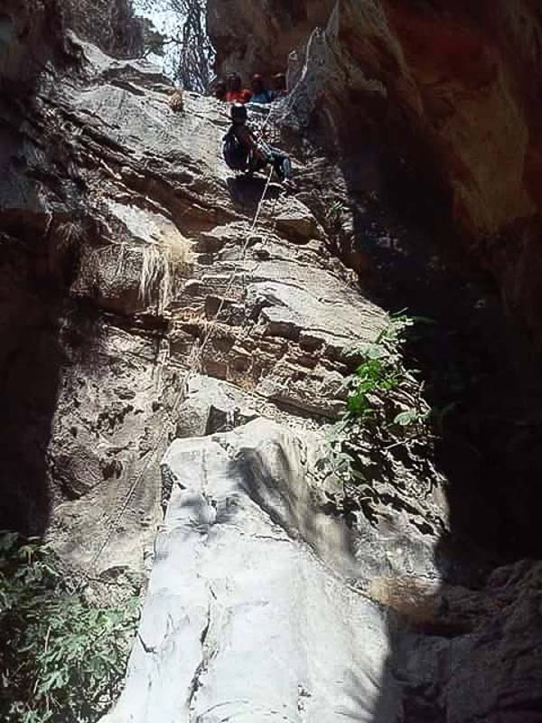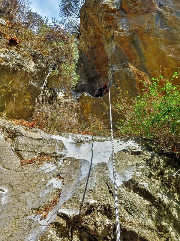Ξεκινάμε από το χωριό Ροδάκινο και μετά από πεζοπορική ανάβαση 45 λεπτών σε αγροτικό δρόμο και ασαφές μονοπάτι προσεγγίζουμε το πρώτο ραπέλ. Η έξοδος είναι πάλι στο χωριό, κάτω από την γέφυρα του επαρχιακού δρόμου Ροδάκινου- Σφακίων.