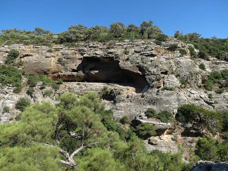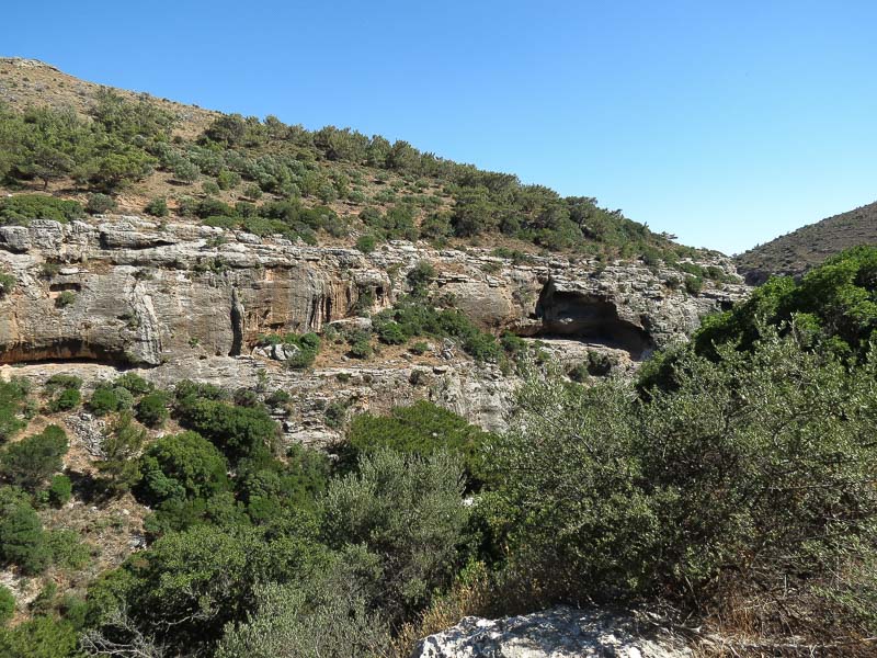 Συνεχίζουμε από χωματόδρομο και ανεβαίνουμε στο σπήλαιο Απολούστρες (610μ), το οποίο επίσης θα εξερευνήσουμε με το φακό μας. Το σπήλαιο έχει μια μεγάλη στοά (60×15) και με την εντελώς αθέατη είσοδο του υπήρξε το ασφαλέστερο καταφύγιο των γύρω χωριών όταν κινδύνευαν από επιδρομές, πειρατείες και διωγμούς. Μέσα σε αυτό το 1930 επισκέπτες βρήκαν χάλκινα νομίσματα και πάνω σε αυτά υπήρχ,ε όπως λέγεται, κεφαλή άνδρα και κυκλικά ήταν γραμμένο το όνομα «Μάρκος Αυρήλιος».