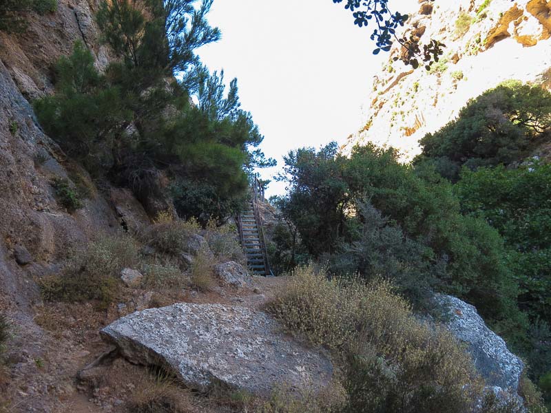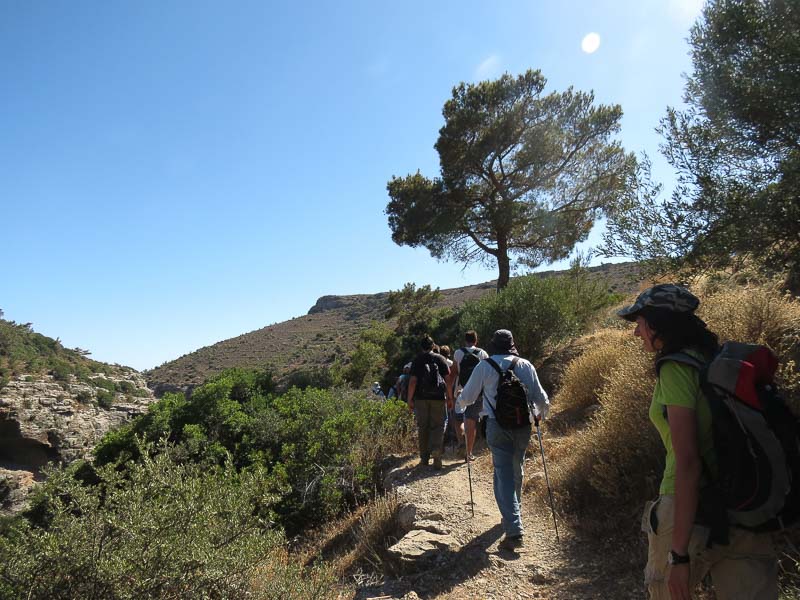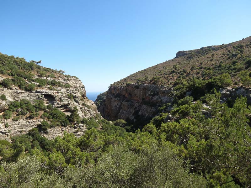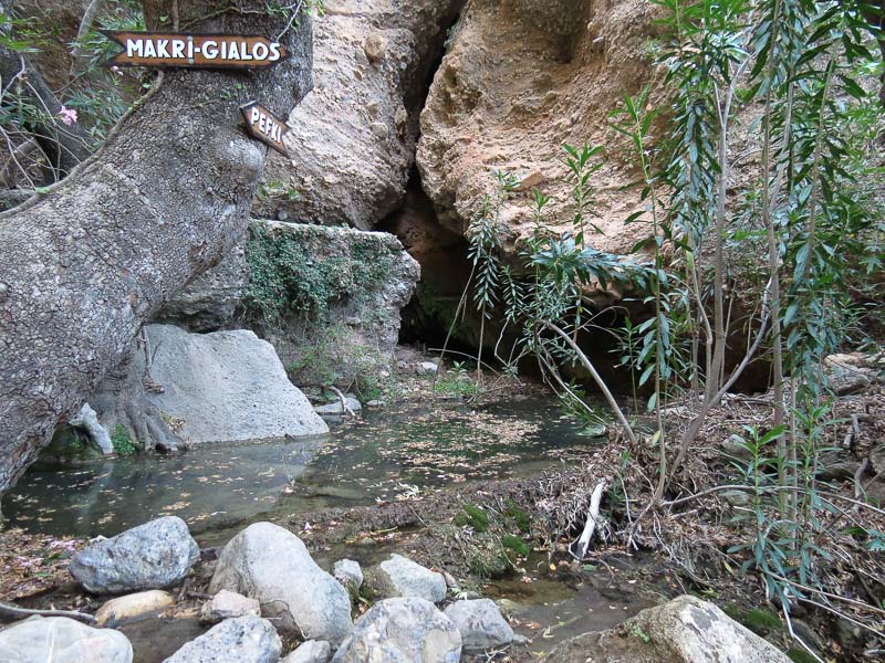 Τέλος, από διαμορφωμένο μονοπάτι και χωματόδρομο θα διασχίσουμε το πανέμορφο Φαράγγι των Πεύκων με τους με καταπληκτικούς σχηματισμούς των πετρωμάτων του από την επίδραση των φυσικών δυνάμεων και την έντονη βλάστηση. Η πορεία μας θα τελειώσει στο Μακρύγιαλο με μπάνιο στη θάλασσα.