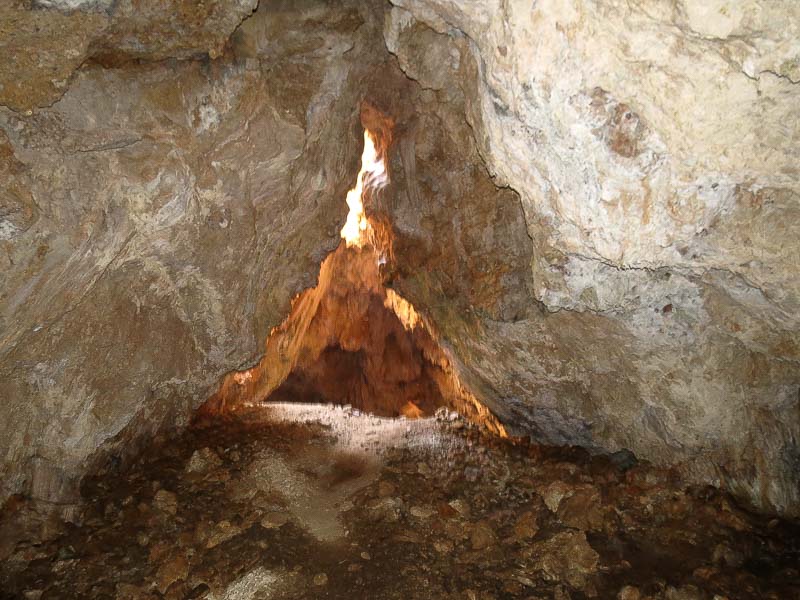 Από το χωριό Πεύκοι (420μ) ακολουθώντας αγροτικό δρόμο και μονοπάτι φθάνουμε και επισκεπτόμαστε το σπήλαιο Βρέικο (540μ), βάθους 30 μέτρων με ίχνη νεολιθικής κατοίκησης. Εκεί θα κάνουμε μια μικρή στάση για να το εξερευνήσουμε, οπότε χρειάζεται να έχουμε φακό μαζί μας.