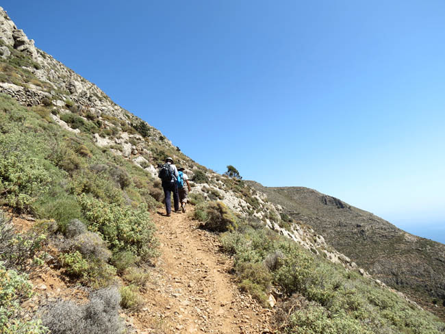 Θα ξεκινήσουμε λίγο πριν από το χωριό Λάστρος Σητείας (320μ) και θα ανεβούμε από καλοσχηματισμένο μονοπάτι στο Εκκλησάκι του Άη Γιάννη (820μ). Θα συνεχίσουμε προς την κορυφή Καψάς (999μ), απ’ όπου θα θαυμάσουμε την πανοραμική θέα σε ολόκληρο τον κόλπο του Μεραμπέλλου, αλλά και το Κρητικό και Λιβυκό πέλαγος. Στη συνέχεια θα κατηφορίσουμε το ίδιο μονοπάτι μέχρι ενός σημείου όπου θα χωριστούμε σε δύο ομάδες.