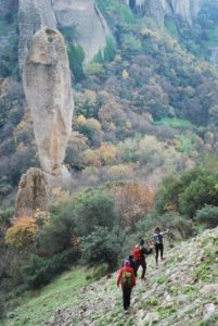 Πεζοπορία ανάμεσα στους πύργους των Μετεώρων.