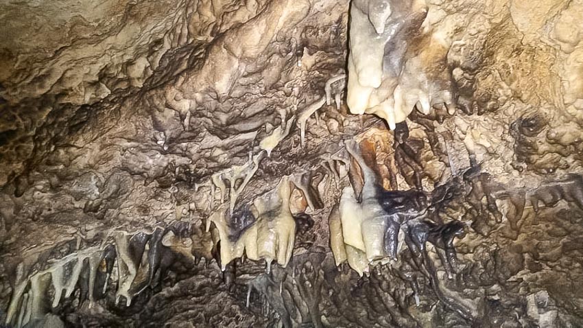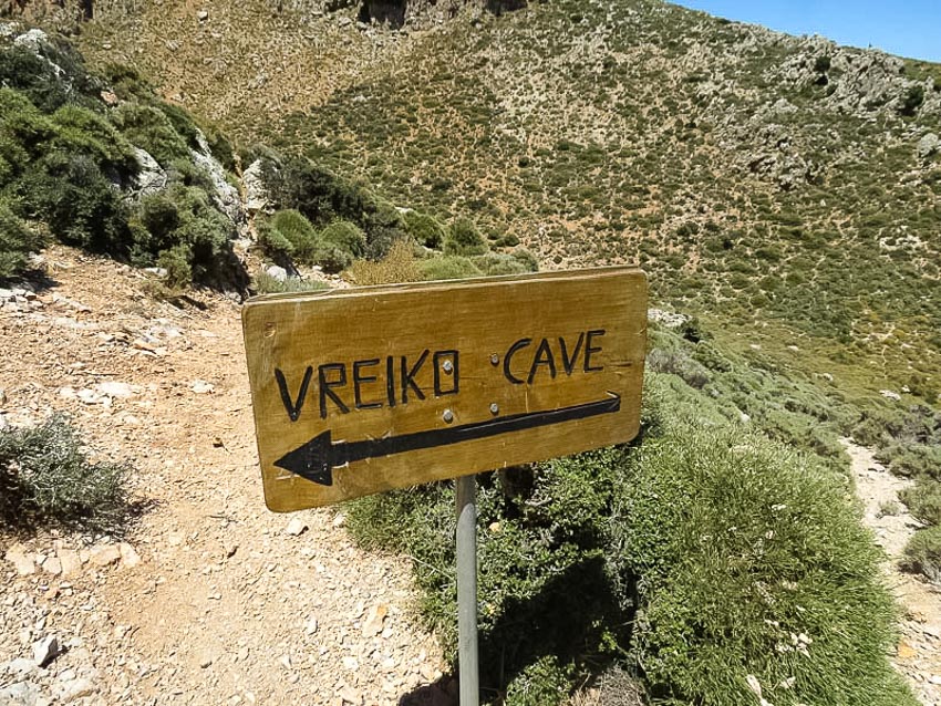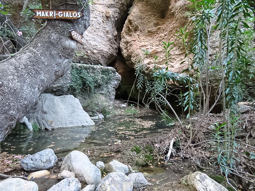Την Κυριακή ανεβαίνουμε από καλντερίμι στους Πεύκους, επισκεπτόμαστε το σπήλαιο Βρέικο και κατεβαίνουμε μέσα από το φαράγγι για μπάνιο στο Μακρύ Γιαλό.