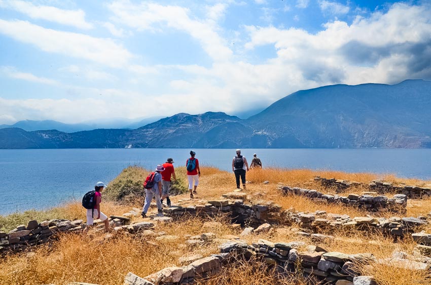 Με καραβάκι από το Θόλο πλέουμε στον κόλπο του Μεραμπέλου και βλέπουμε τα άγνωστα νησάκια και τις απρόσιτες παραλίες της περιοχής. Θα κάνουμε τον περίπλου της Ψείρας που κατοικήθηκε αδιάλειπτα για χιλιάδες χρόνια, θα δέσουμε στο Μινωικό λιμάνι, θα περπατήσουμε και θα γνωρίσουμε τη Μινωική πόλη, θα σταματήσουμε στην παραλία Αγριόμαντρα και σε άλλες μικρές παραλίες όπου θα απολαύσουμε τις βουτιές μας.