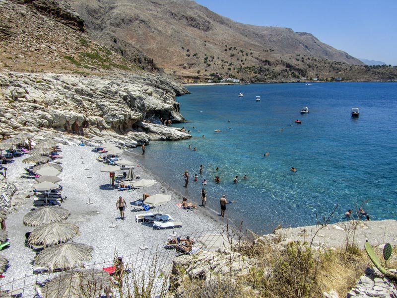 Όσοι επιθυμούν παραμένουν στο Λουτρό για μπάνιο και φαγητό και αναχωρούν με το καραβάκι για Χώρα Σφακίων. Οι υπόλοιποι, μετά από σύντομη στάση στο Λουτρό, συνεχίζουν για την υπέροχη παραλία Γλυκά Νερά, όπου απολαμβάνουν το μπάνιο τους, και ολοκληρώνουν τη διαδρομή στη Χώρα Σφακίων.