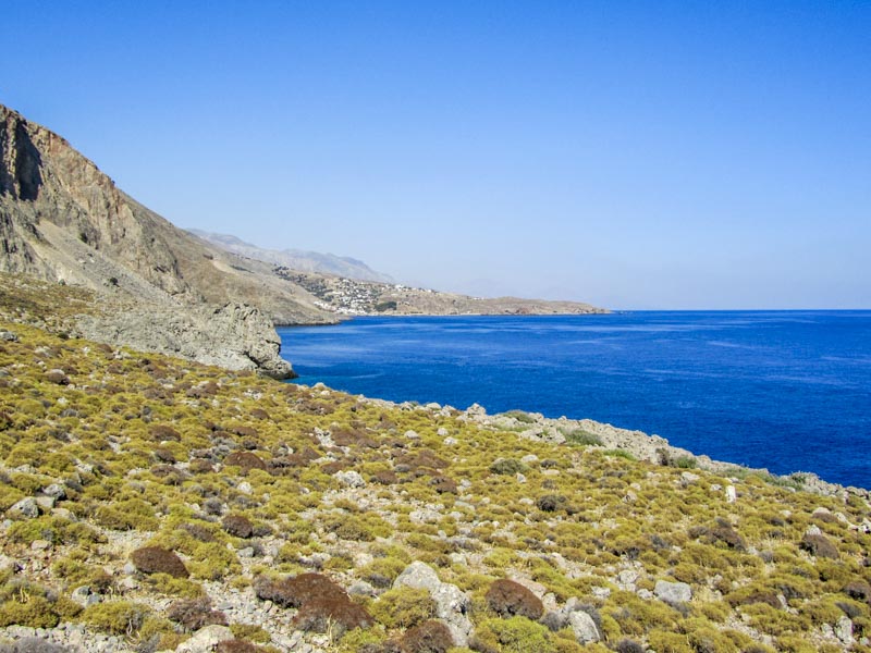 Την Κυριακή, νωρίς το πρωί, αναχωρούμε για την Αράδαινα Σφακίων (520μ). Από εκεί ξεκινάμε την κατάβαση του ομώνυμου φαραγγιού μέχρι την παραλία Άσπρα Μάρμαρα, όπου πραγματοποιούμε σύντομη στάση για μπάνιο. Στη συνέχεια περπατάμε με κατεύθυνση ανατολική κατά μήκος του παραλιακού μονοπατιού Ε4 περνώντας την παραλία Λύκο, Φοίνικα και φτάνουμε στο γραφικό οικισμό Λουτρό.