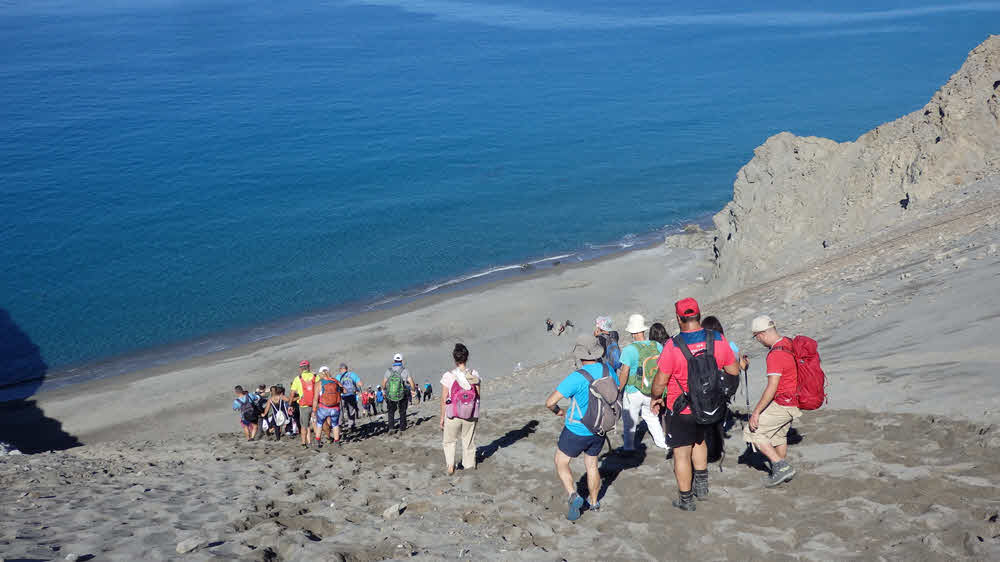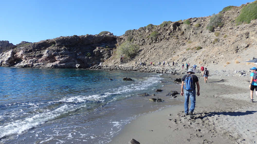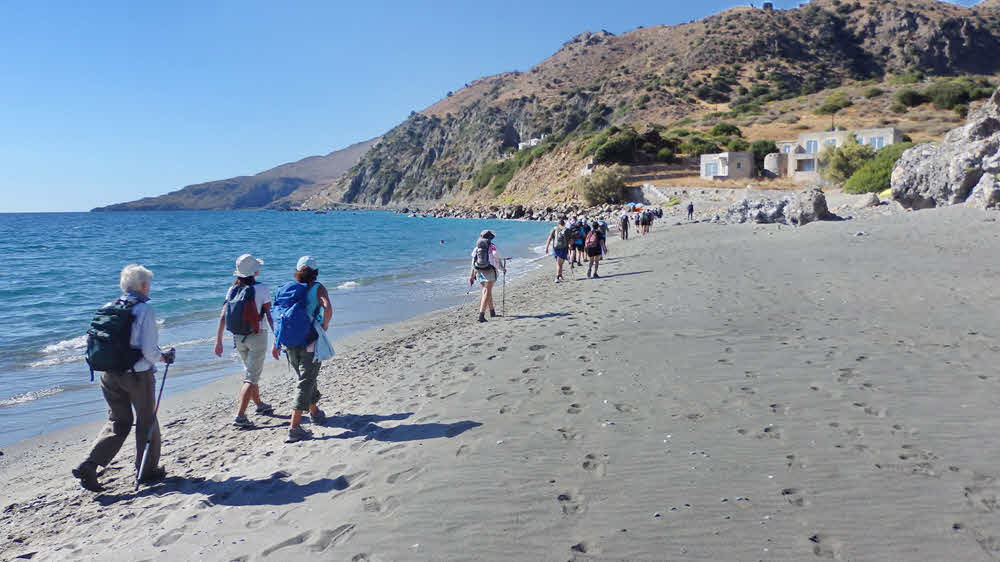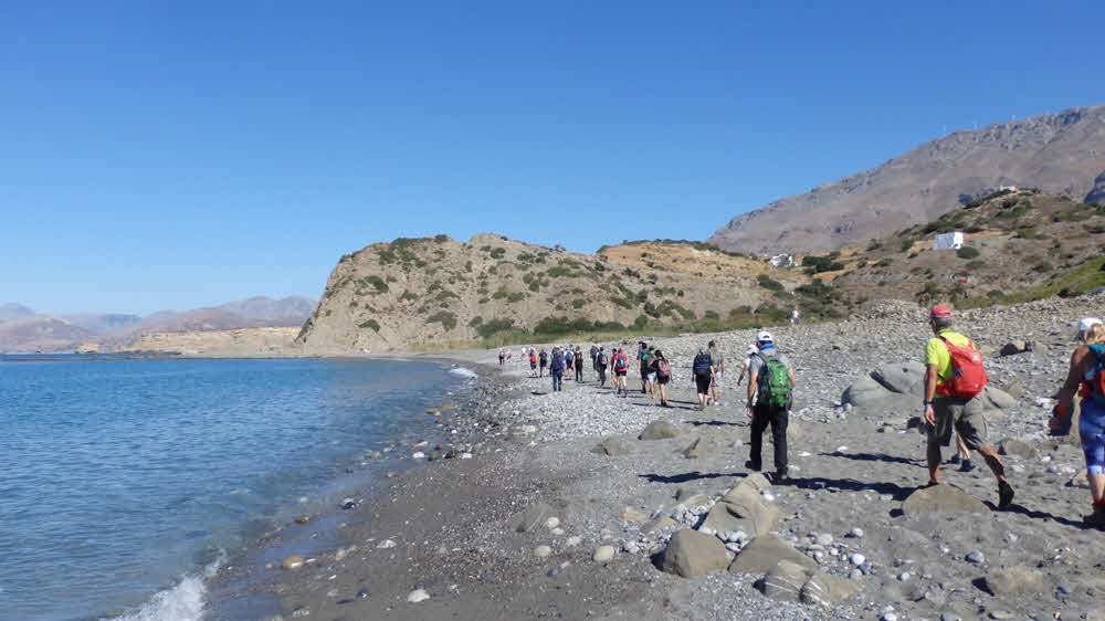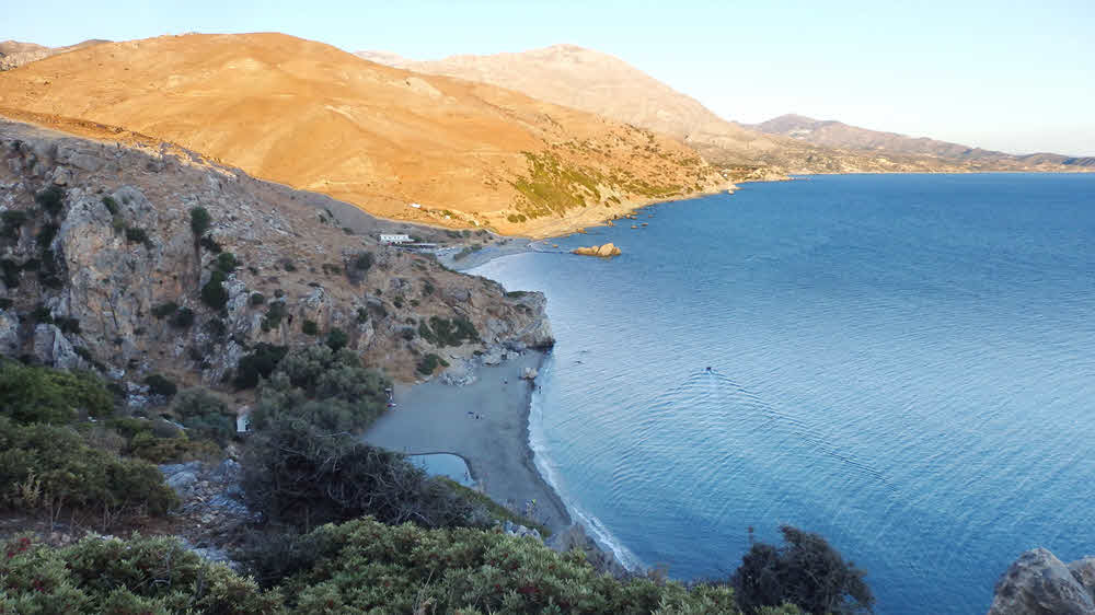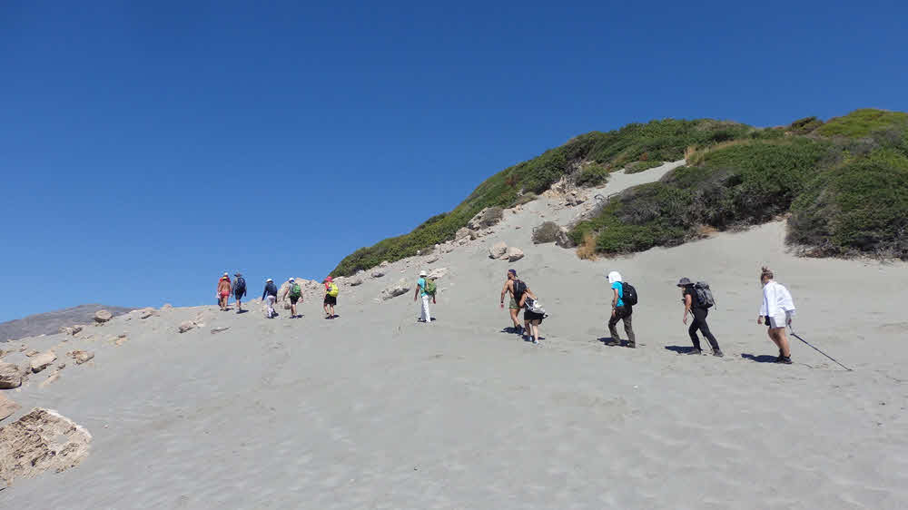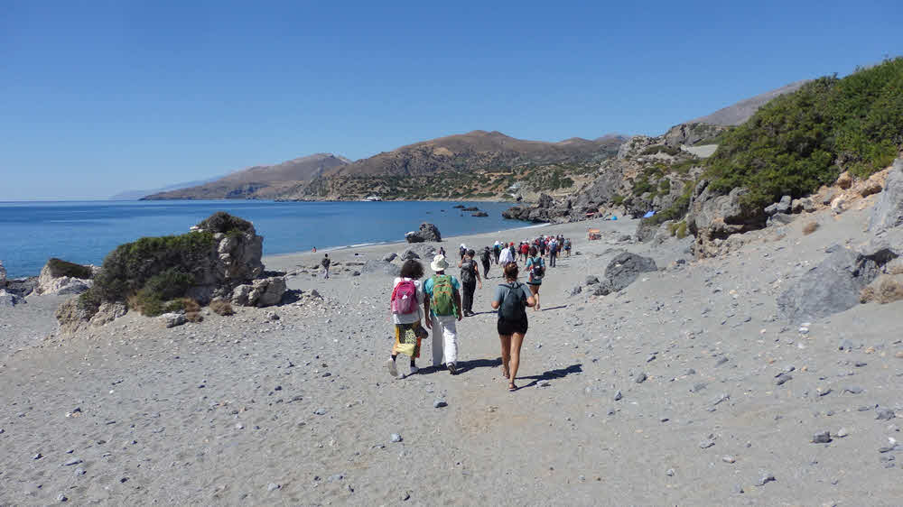 Starting from Agios Pavlos beach we hike on the sand passing through Triopetra and other beautiful beaches. We end on Preveli beach, with the palm-tree forest and the river flowing into the sea.