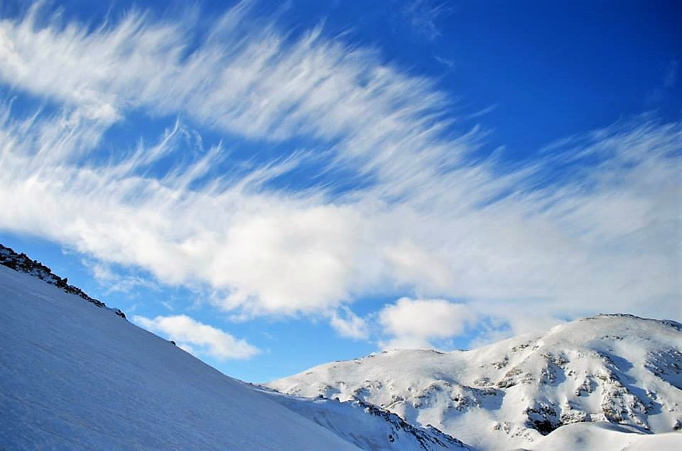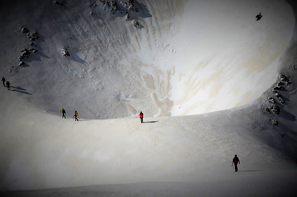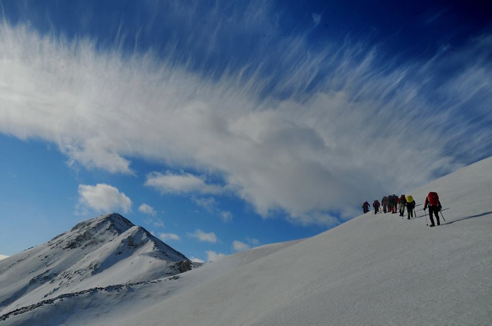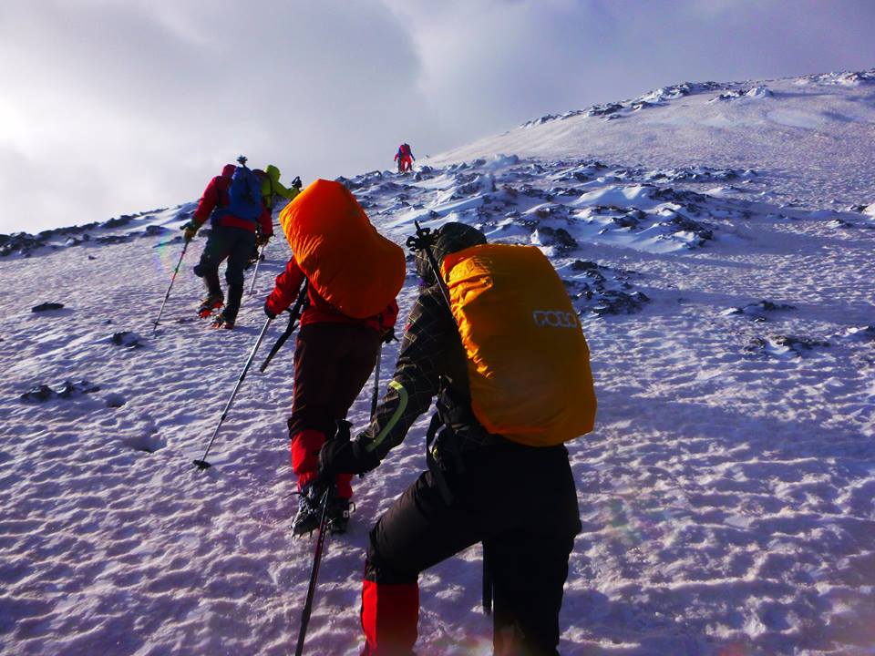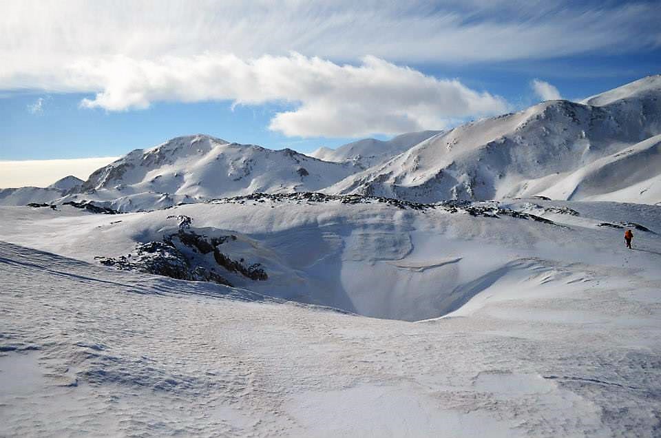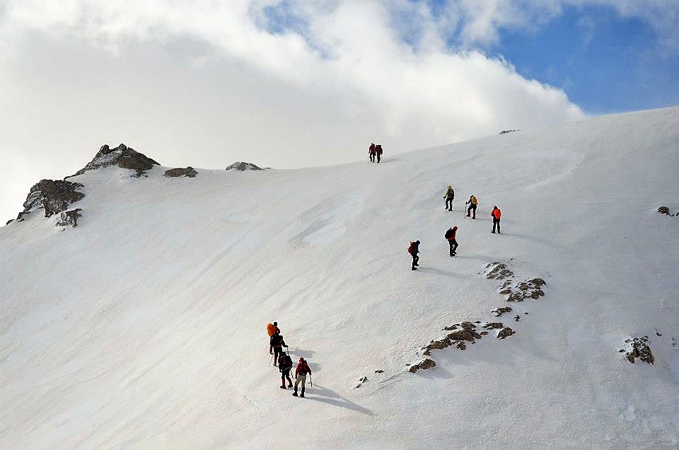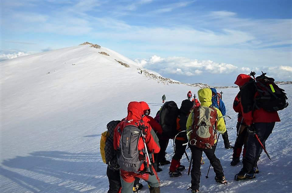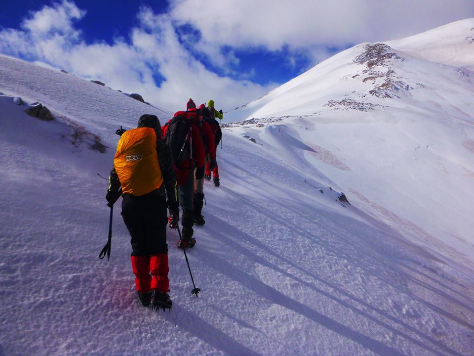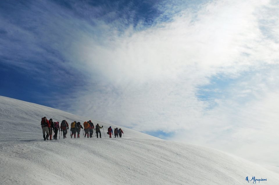 Νωρίς το επόμενο πρωί ξεκινάμε για τις κορυφές  Σπαθί (2048μ) και Άγιο Πνεύμα (2283μ), μια  δύσκολη ανάβαση σε χιονισμένο παγωμένο πεδίο. Τέλος, επιστρέφουμε στο καταφύγιο κι από ‘κει πίσω στους Κάμπους.