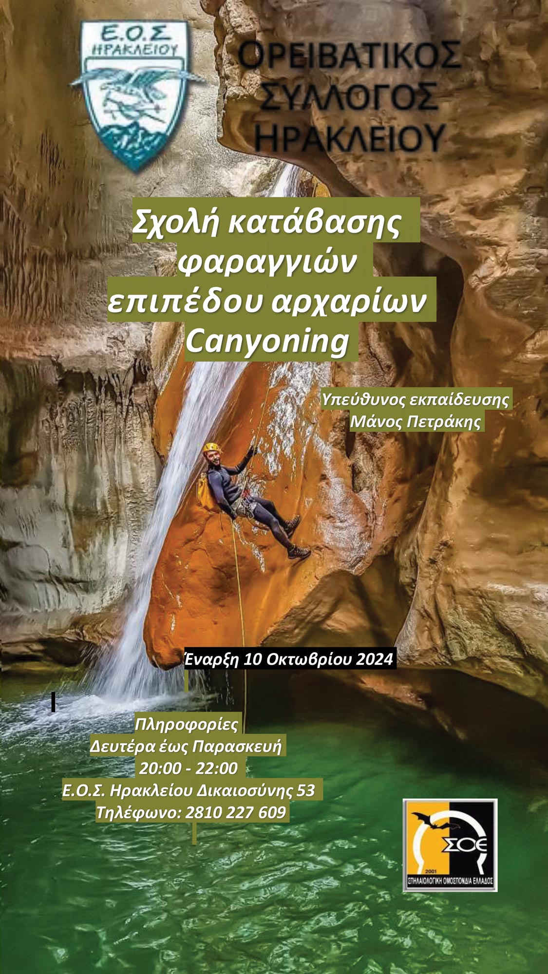 Σχολή Κατάβασης Φαραγγιών επιπέδου αρχαρίων, Φθινόπωρο 2024