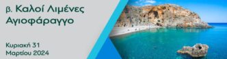 Κυριακή 31 Μαρτίου 2024 Εύκολη πεζοπορία που ξεκινάει και καταλήγει στους Καλούς Λιμένες. Ακολουθώντας μονοπάτι με θέα στο Λιβυκό πέλαγος περνάμε από …