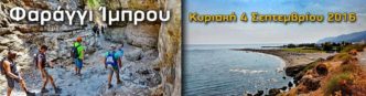 Κυριακή 6 Σεπτεμβρίου 2015 Όμορφη και ευχάριστη πεζοπορία στο Φαράγγι της Ίμπρου στα Σφακιά που ξεκινάει από το χωριό Ίμπρος (850μ) και καταλήγει …