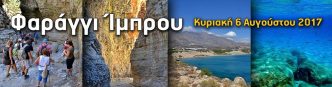 Κυριακή 6 Αυγούστου 2017 Όμορφη και ευχάριστη πεζοπορία στο Φαράγγι της Ίμπρου στα Σφακιά που ξεκινάει από το χωριό Ίμπρος (850μ) και καταλήγει στο χωριό Κομιτάδες (200μ). Το …